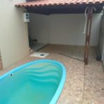 Casa com dois quartos, sendo uma suíte e, o melhor, com piscina.