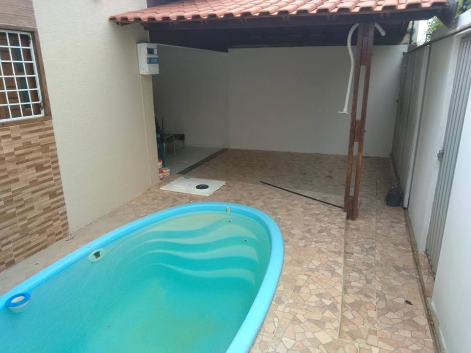 Casa com dois quartos, sendo uma suíte e, o melhor, com piscina.