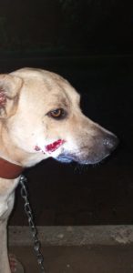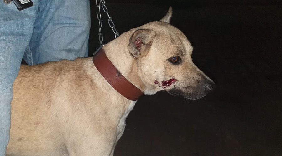 Assim que a energia foi restabelecida populares encontraram um cachorro sangrando atingido com o disparo da arma. A bala ficou alojada em sua face.