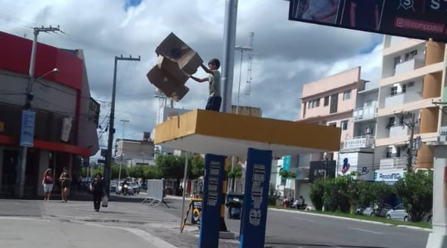 Irmãos abandonados dormem em cima de ponto de ônibus no centro de Patos
