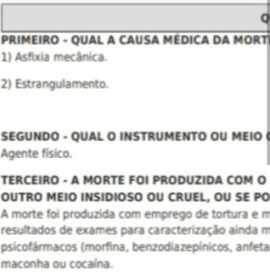 De acordo com os dados apresentados pelas emissoras de rádios e TV, a jovem foi assassinada por Asfixia Mecânica e Estrangulamento, e o meio foi agente externo, torturada cruelmente. A notícia foi dada em extra-ordinário.