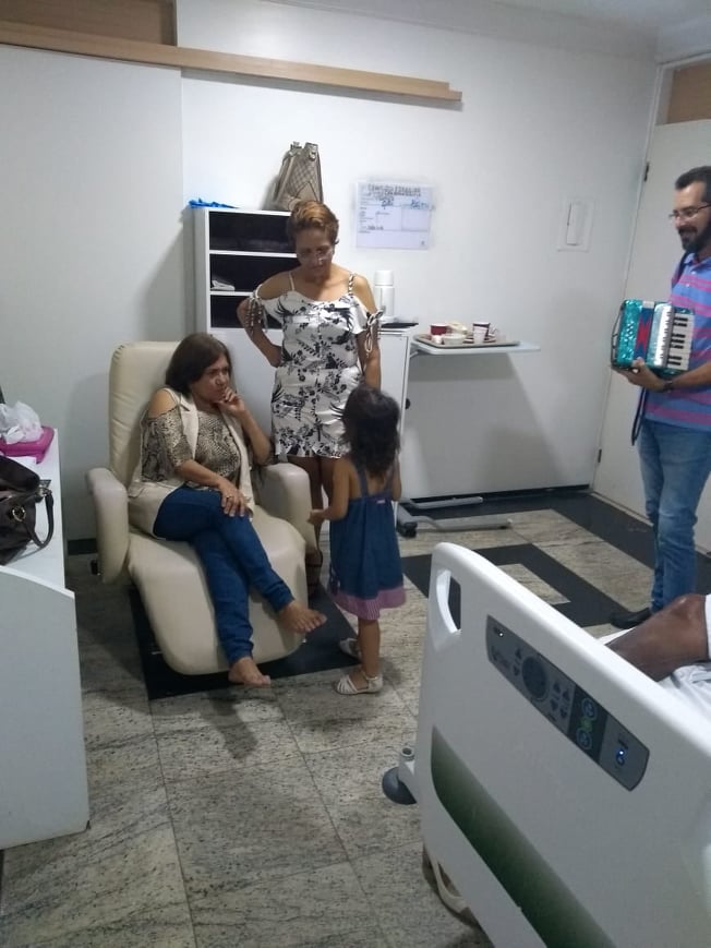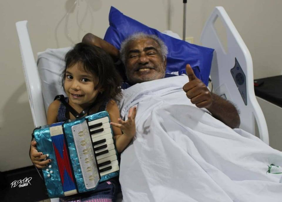 Na sexta-feira, 15, acompanhado por um sanfoneiro, ele cantou nos corredores do hospital, e fez médicos e enfermeiras dançaram ao som de “Neném mulher”, a sua música mais conhecida.