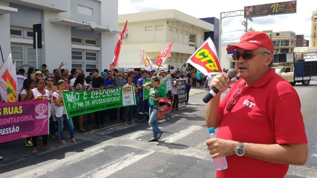 O presidente da CTB (Central dos Trabalhadores e Trabalhadoras do Brasil) na Paraíba, José Gonçalves, usou da palavra e destacou a necessidade da união da classe trabalhadora da cidade e do campo, na pressão aos 12 deputados e 3 senadores da Paraíba que não votem a favor da reforma do Bolsonaro.