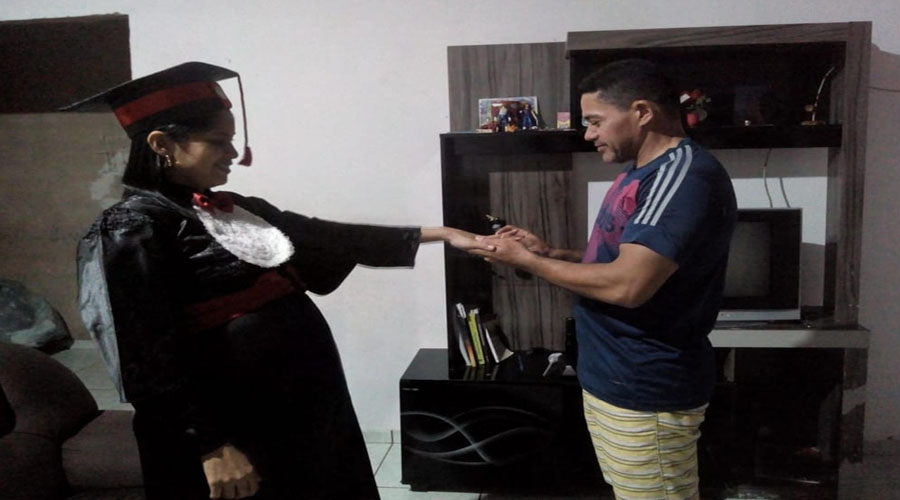 “Ela estava fazendo as unhas quando se sentiu mal, ligou chorando avisando que não poderia mais ir. Quando a cerimônia acabou, nós pegamos a documentação e fomos até a casa dela, que fica perto da praia. Ela vestiu a beca, fez o juramento, eu fiz a leitura do texto conforme manda o ritual, ela recebeu o anel do seu esposo e assinou a ata”, conta a professora Sônia Amaral, que foi professora da turma do Parfor.