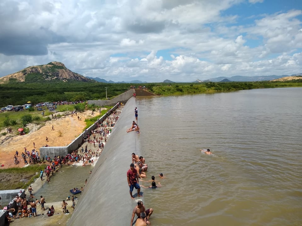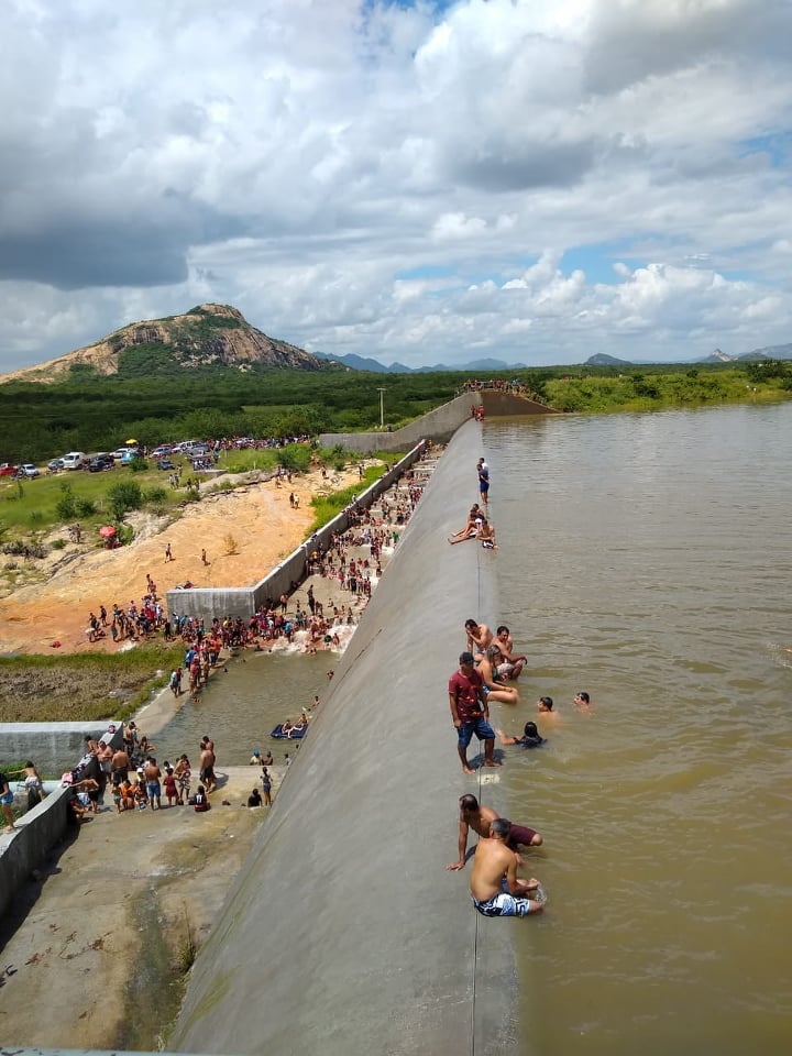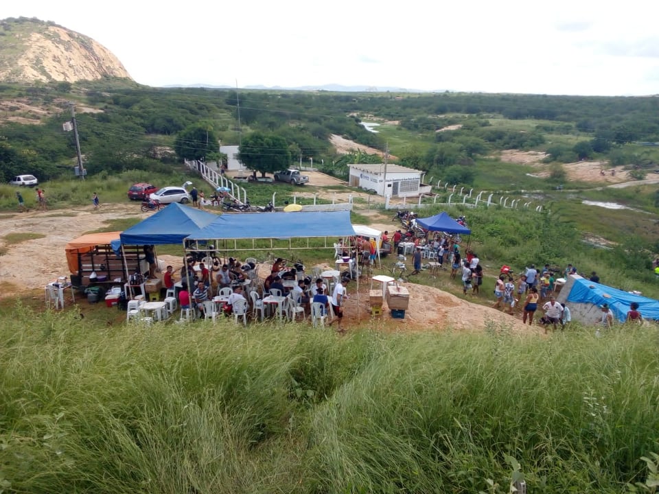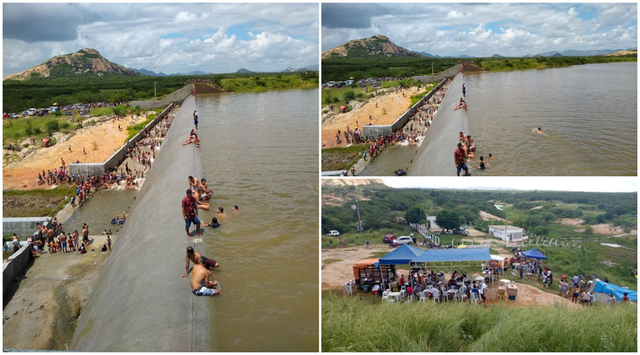 Desde as primeiras horas deste domingo (07) que a Barragem da Farinha está tomada por banhistas, inclusive com muitas tendas e pontos de venda de água e bebida. “Virou ‘praia’ aqui”, disse um morador das proximidades.