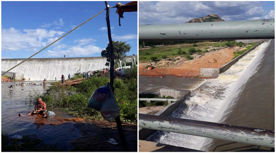 A Barragem da Farinha, em Patos, segue transbordando forte nesta terça-feira (09). O manancial que abastece Patos tem capacidade para armazenar 25.738.500 de metros cúbicos e começou a transbordando levemente na madrugada do domingo (07). A sangria só ficou forte na parte da noite do domingo e forte continua.