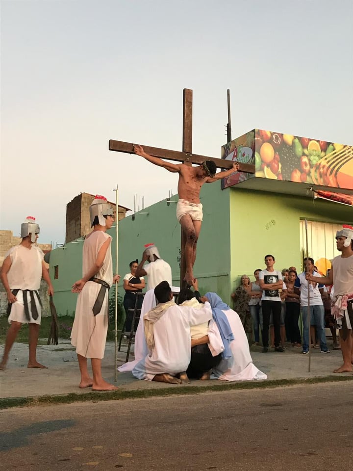 A encenação da crucificação, morte e ressurreição, vai acontecer na Rua Pedro Rosa, onde existem algumas pedras que simbolizarão o Monte Calvário.