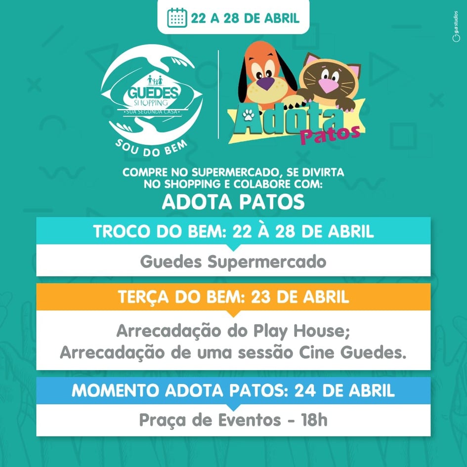 - Momento Adota Patos: 24 de abril – Praça de Eventos – 18h.