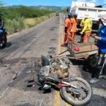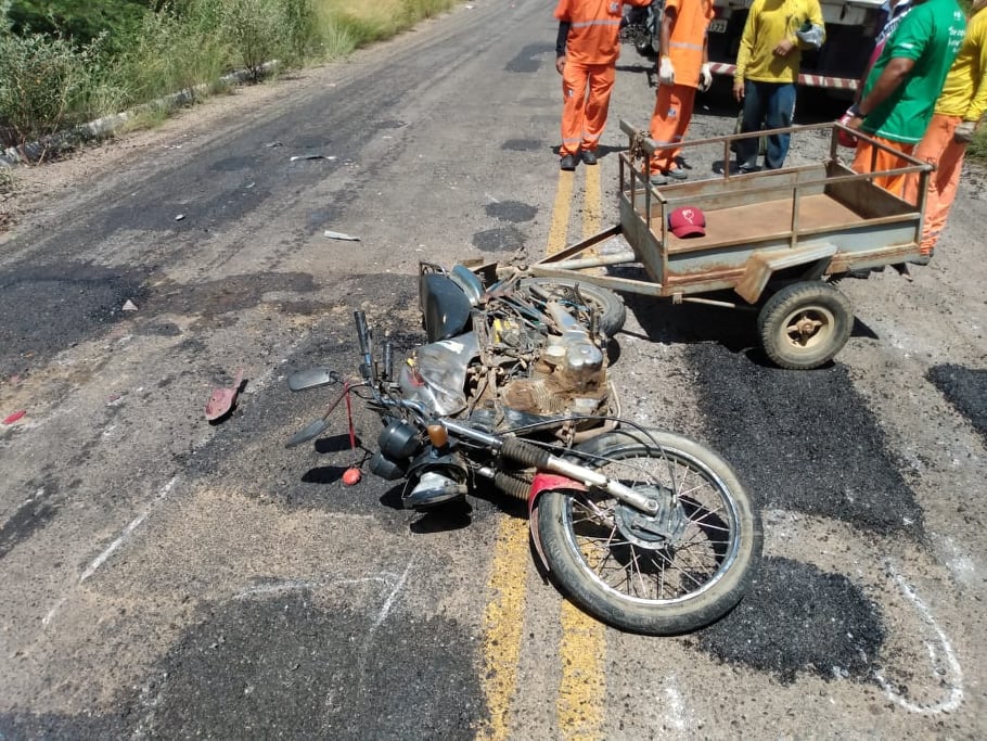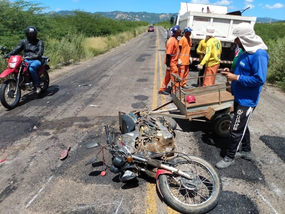 Por volta do meio-dia desta terça-feira, 07, um caminhão-baú, com placa de Patos, segundo as informações, trefegava em alta velocidade atropelou uma moto em que trafegavam o condutor, sua esposa e uma criança pequena, na PB 262, entre Patos e São José do Bonfim. O caminhão trafegava no sentido Patos/São José do Bonfim e a moto trafegava no sentido São José do Bonfim/Patos.