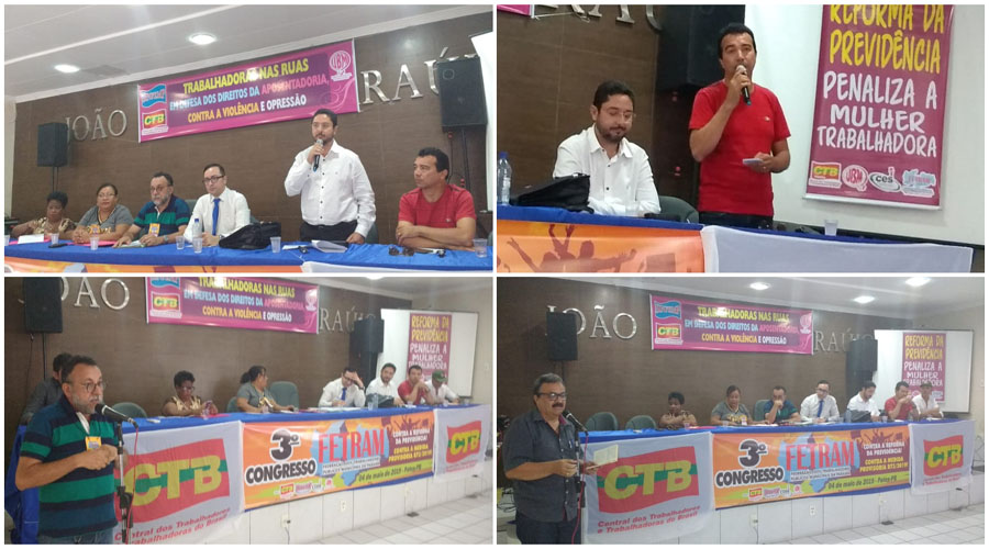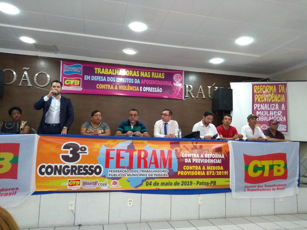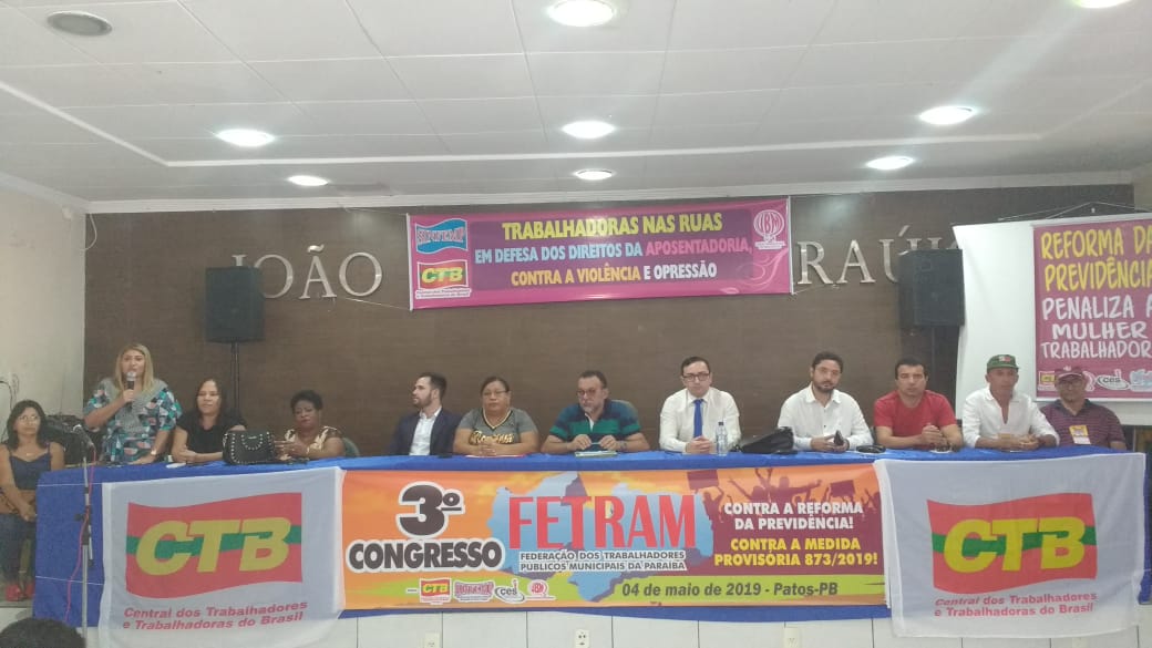 O presidente da CTB (Central dos Trabalhadores e Trabalhadoras do Brasil na Paraíba), José Gonçalves, afirmou que a central irá trabalhar lado a lado da FETRAM e dos sindicatos filiados, travando a luta em cada município, em cada região do Estado, especialmente contra a Reforma da Previdência.” Vamos pressionar os deputados e senadores da Paraíba para não votarem a favor do fim da aposentadoria em nosso País e para isso, vamos para as portas desses senhores e senhoras pressionar para não votarem a favor do Bolsonaro”, disse o mesmo.