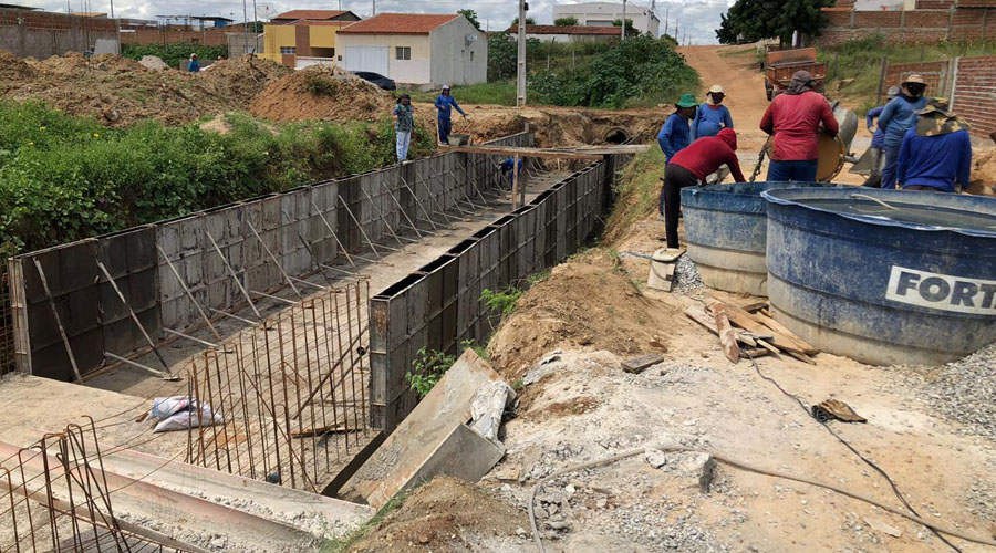 A obra, que está sendo executada com recursos da Caixa Econômica Federal-CEF, tem por finalidade garantir o escoamento das águas pluviais e evitar os alagamentos em períodos de chuva, nos bairros Noé Trajano e Novo Horizonte, localizados na zona norte da cidade.