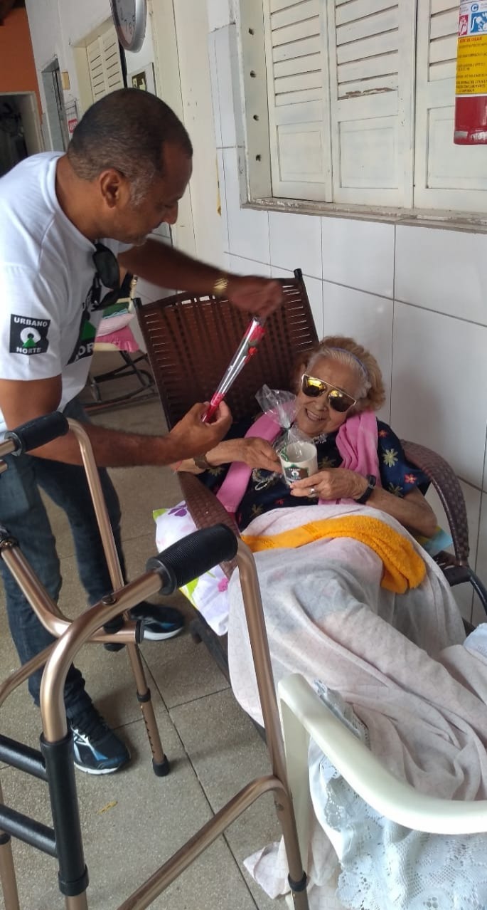 As senhoras que moram no Lar do Idoso Jesus de Nazaré, no São Sebastião, em Patos, tiveram um Dia das Mães muito especial. Uma comitiva do Urbano Norte Patos, serviço de transporte de passageiro por aplicativo, se uniu para tornar possível o momento de confraternização e alegria para essas mulheres.