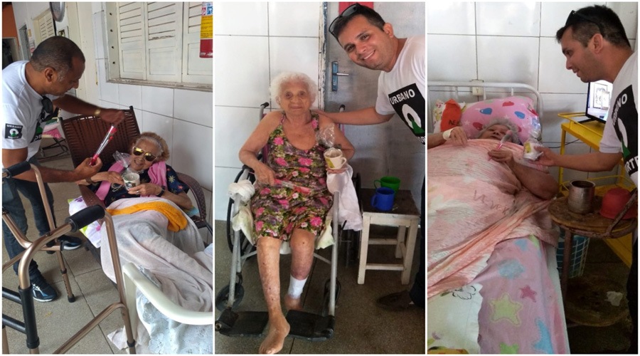 Cerca de 20 lembranças foram distribuídas entre as idosas e as voluntárias do abrigo, que também ganharam o carinho da equipe Urbano Norte Patos.