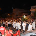 No largo da igreja matriz o pároco Adailton Pedro,acolheu os fieis que chegavam em procissão luminosa pelas ruas do bairro, e presidiu a Missa Solene Campal concelebrada pelo Pe. Antônio Evandro da Cidade de São José de Espinharas e os diáconos da paróquia.