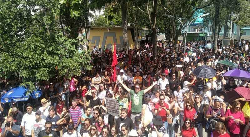Em Campina Grande, uma multidão tomou conta da Praça da Bandeira, na manhã desta quinta-feira (15) também em ato contra cortes de verbas na educação superior na cidade.