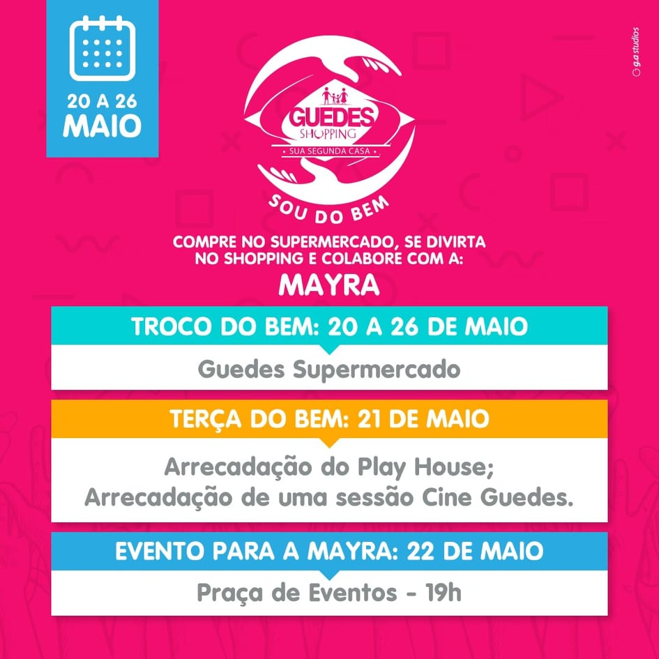Terça do Bem: 21 de maio – Arrecadação do Play House; Arrecadação de uma sessão Cine Guedes.