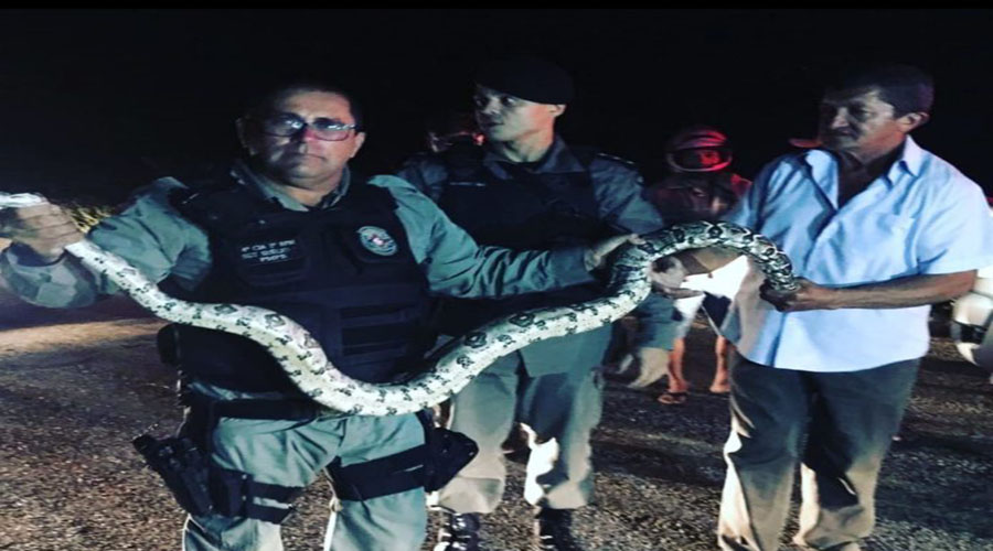 A cobra estava cruzando a pista quando os policiais a capturaram para evitar que ela fosse atropelada. A jiboia foi levada para um lugar seguro e devolvida ao seu habitat natural.