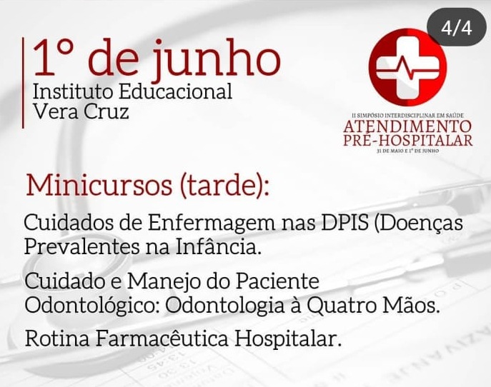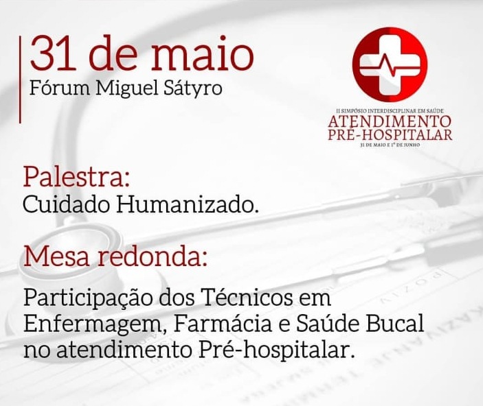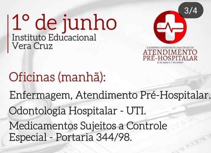 Nos dias 31 de maio e 1º de junto acontece o II Simpósio Interdisciplinar de Saúde Atendimento Pré-hospitalar no Instituto Educacional Vera Cruz, em Patos.