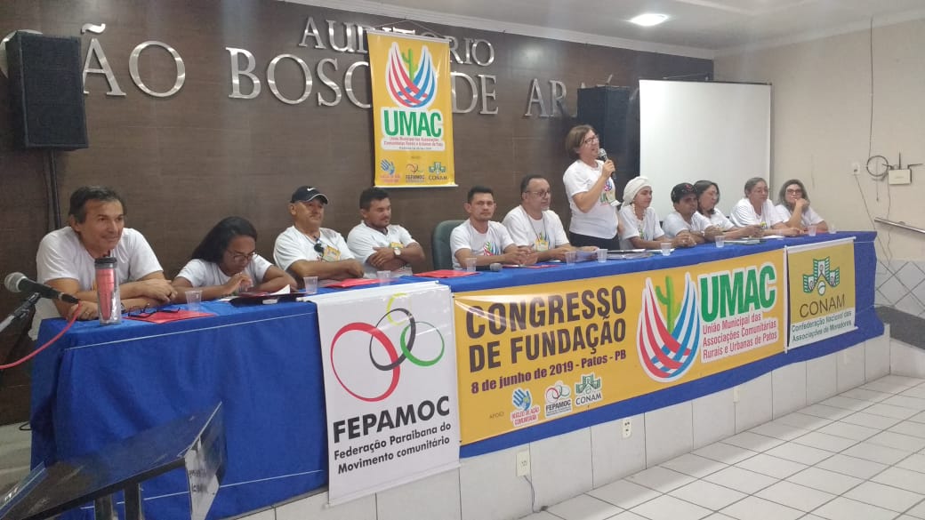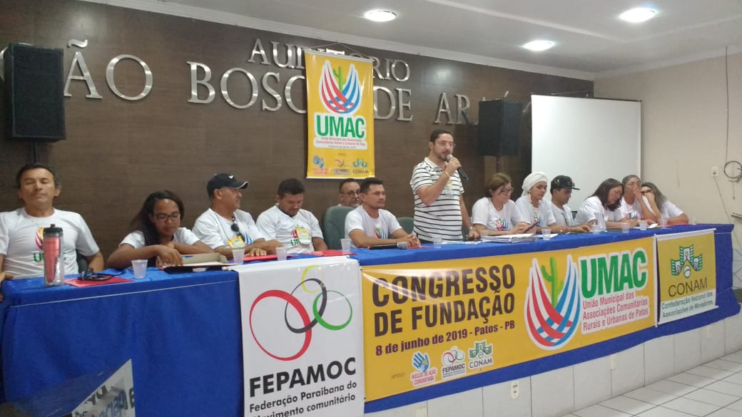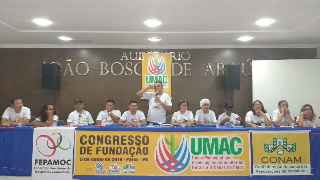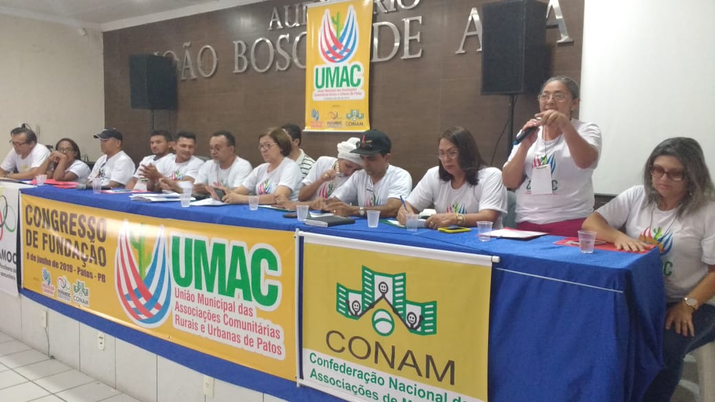 Com dezenas de lideranças comunitárias rurais e urbanas de Patos, da juventude, das mulheres, de representação de igrejas, de ONGs, grupo afro e do Axé, pescadores, assentados da reforma agrária, homens e mulheres do campo e da cidade, foi fundada neste dia 8 de junho de 2019, a UMAC- União Municipal das Associações Comunitárias Rurais e Urbanas de Patos, no Auditório da Associação Comercial e Industrial de Patos.