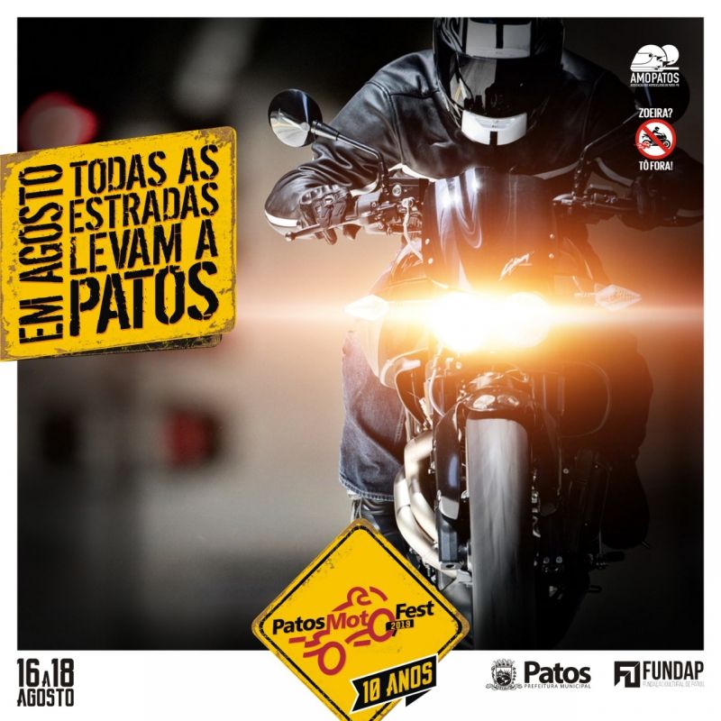 Finalmente sai a esperada decisão sobre a realização do segundo maior evento cultural de Patos. O Patos Moto Fest 2019 está confirmado para os dias 16, 17 e 18 de agosto no Terreiro do Forró.