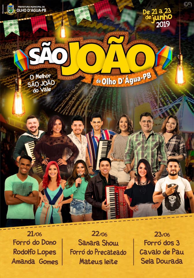 De 21 a 23 de junho acontece o São João de Olho d’Água, na Região Metropolitana do Vale do Piancó, promovido pela Prefeitura Municipal.