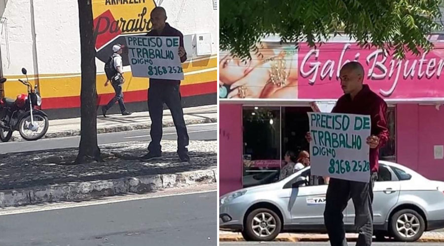 No dia 23 de maio, o jovem Cleber Simões, de 26 anos, passou a manhã inteira em frente à Prefeitura de Patos segurando um cartaz com o letreiro: “Preciso de trabalho digno. 98168-2528”.