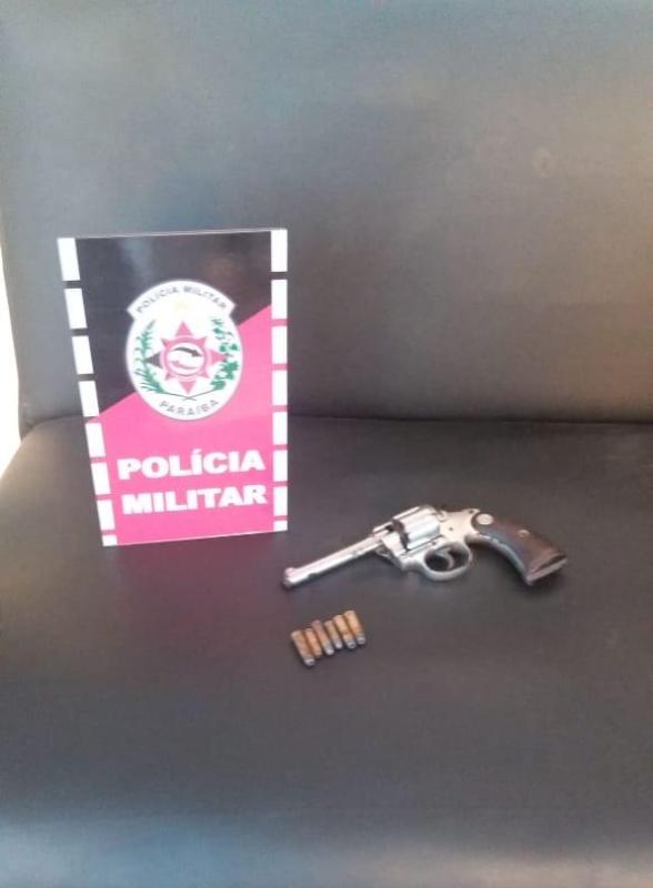 Os policiais apreenderam uma motocicleta Fan 150; e um revólver calibre 38 com 06 munições, sendo uma pinada.