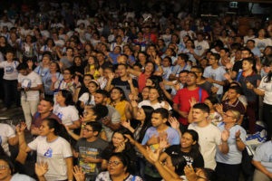 Embora cansados pelas intensas atividades do Congresso, as pessoas mostram-se renovadas e alegres com a realização do grande Show Missionário.