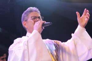 Inicialmente, o Padre Evandro Romero cantou e encantou o público presente com diversas músicas de evangelização que animam a vida do Povo de Deus em celebrações, momentos de louvor e na caminhada de fé diária.