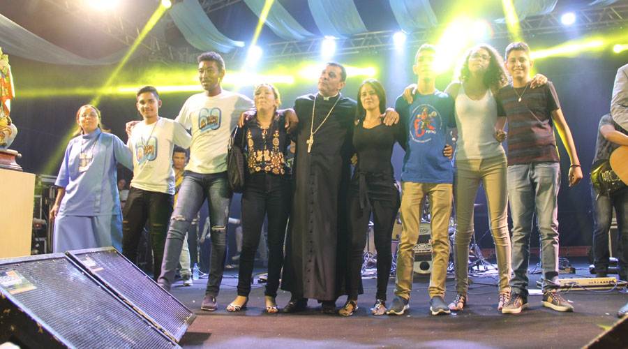 Um outro talento que subiu ao palco a convite do Padre Evandro Romero foi Weverson Nunes, da paróquia de São José do município de Cacimbas. Ele entoou uma bela canção de evangelização, juntamente com a Banda Acorde para Deus.