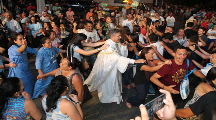 Inicialmente, o Padre Evandro Romero cantou e encantou o público presente com diversas músicas de evangelização que animam a vida do Povo de Deus em celebrações, momentos de louvor e na caminhada de fé diária.
