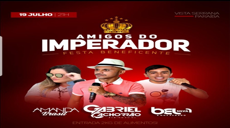 Nesta sexta-feira, 19, a partir das 21 horas, acontece a Festa Beneficente “Amigos do Imperador”, no Bar do Beny, no Sítio Acary, no município de Vista Serrana. A entrada será 2 kg de alimentos, que serão doados para famílias carentes de municípios.