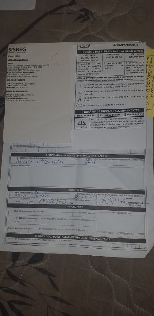 O jovem Anderson da Silva Leite, de 21 anos, pai de dois filhos, necessita de doação de sangue do tipo 0+, pois o mesmo será submetido a uma cirurgia de hérnia umbilical (deslocamento de um órgão ou tecido por meio de uma abertura anormal), em Campina Grande. Ele reside na Rua Antônio Torres de Morais, no bairro Monte Castelo, próximo à Unidade Básica de Saúde Pedro Leandro, em Patos.