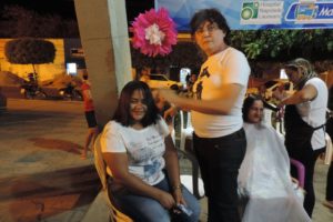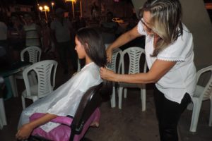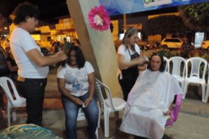 O evento começou com um gesto solidário, que através do trabalho voluntário dos cabeleireiros Demóstenes, Markelândia e Hosana, foram cortados os cabelos longos de 30 mulheres para doar ao hospital, entre as quais a pequena Clara de 10 anos.