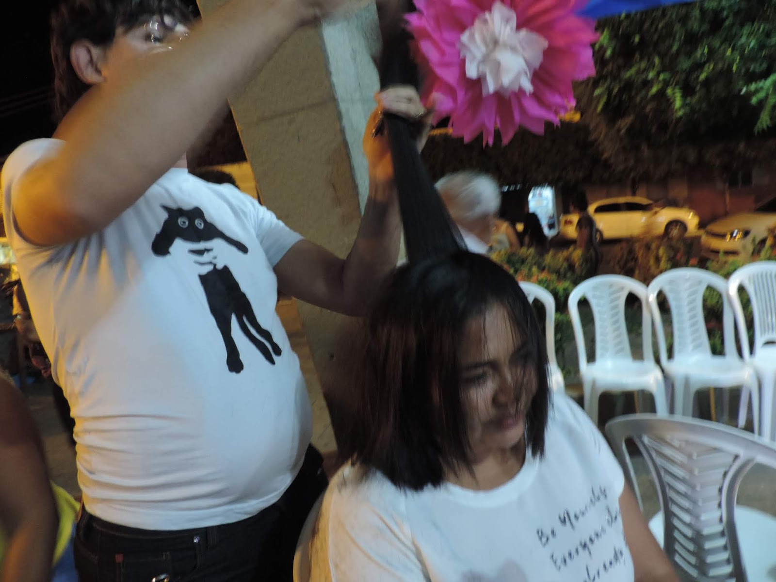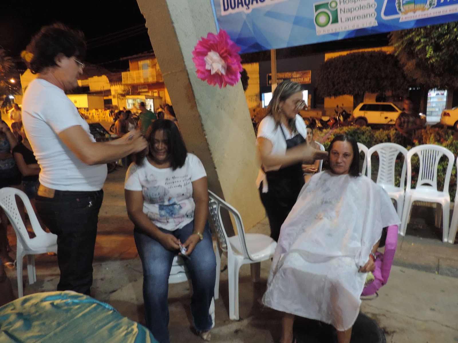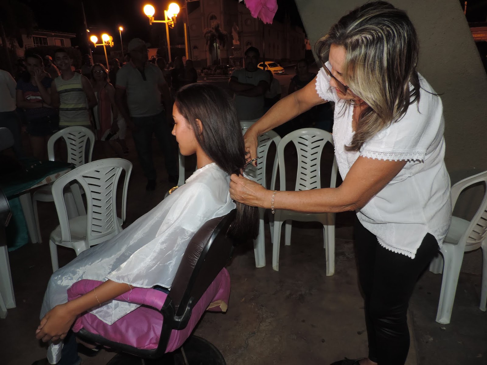 O evento começou com um gesto solidário, que através do trabalho voluntário dos cabeleireiros Demóstenes, Markelândia e Hosana, foram cortados os cabelos longos de 30 mulheres para doar ao hospital, entre as quais a pequena Clara de 10 anos.