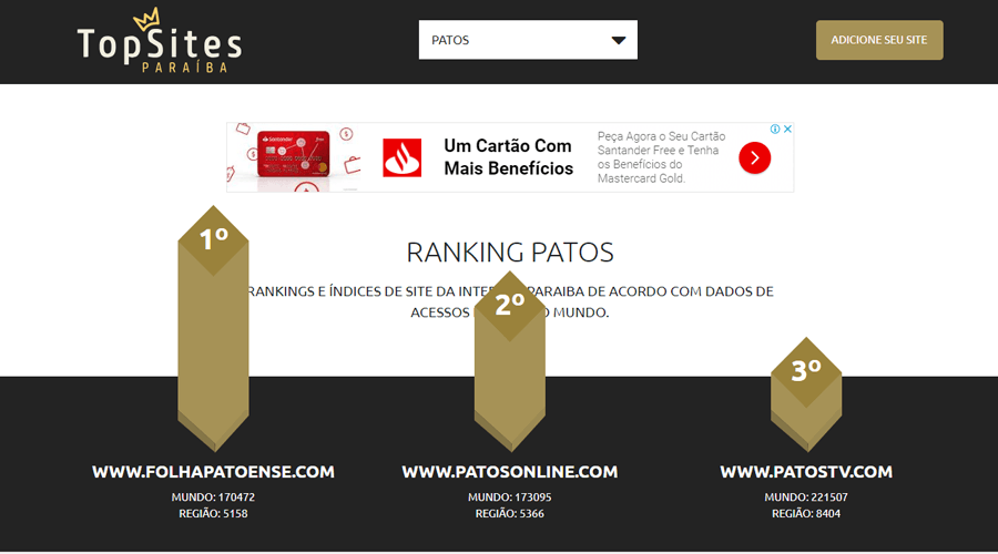 Não é de agora que a Folha Patoense é o site mais acessado de Patos. Os portais de medição já mostravam que há mais de um ano a Folha Patoense tinha a preferência na Região Metropolitana de Patos, no entanto, ainda faltava a confirmação do Alexa, que é o portal de medição mais antigo e com mais credibilidade, e na manhã desta segunda-feira, 22, veio a confirmação do Alexa: a Folha Patoense é o portal mais acessado de Patos.