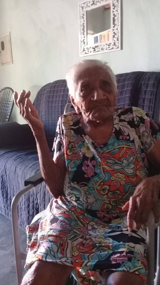 No ano passado ela teve de vir a Patos, para renovação de benefício junto à Agência do Instituto Nacional de Seguridade Social (INSS) e demonstrou bom humor, chamando atenção de todos. “Só lamento uma idosa com mais de 110 anos ter de ir até o INSS, na maior dificuldade de locomoção, pois o certo seria eles terem alguém pra vir até ela”, disse uma vizinha.