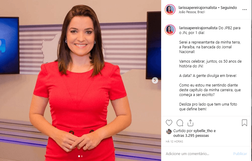 Em comemoração aos 50 anos do Jornal Nacional, da rede Globo, a emissora selecionou jornalistas dos principais telejornais do Brasil para realizarem um rodízio no comando da bancada. Na Paraíba, a escolhida foi a jornalista Larissa Pereira que atualmente apresenta o JPB2.