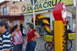 Neste sábado (10), a matriz da Farmácia Santa Cruz, situada na Rua Manoel Mota, no bairro Jatobá, em frente ao Complexo de Saúde Maria Marques, em Patos, está comemorando um ano de inauguração e pela manhã foi servido um café da manhã para. “Essa farmácia para mim é a melhor do bairro. Eu sou freguês da casa porque tem um bom atendimento e onde tem um bom atendimento tem um bom freguês”, disse o idoso José Antônio, conhecido como Nêgo Chimba, residente no Conjunto Nova Conquista.
