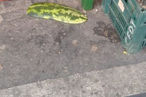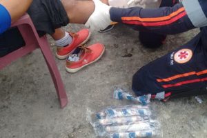 Ele caiu e a moto caiu por cima da perna dele, que ficou sentindo muitas dores no calcanhar e no joelho. O Samu prestou os primeiros socorros, o imobilizou e o levou para o Complexo Hospitalar Patoense, onde ele se encontra internado. “A falta de raciocínio humano gera graves consequências e acidentes também. Olha o que ocasionou essa casca de melancia jogada ao solo. Parecia que o motociclista estava com um pneu sobre uma prancha de surf”, postou a jovem Fernanda Leite nas redes sociais, que presenciou o acidente.
