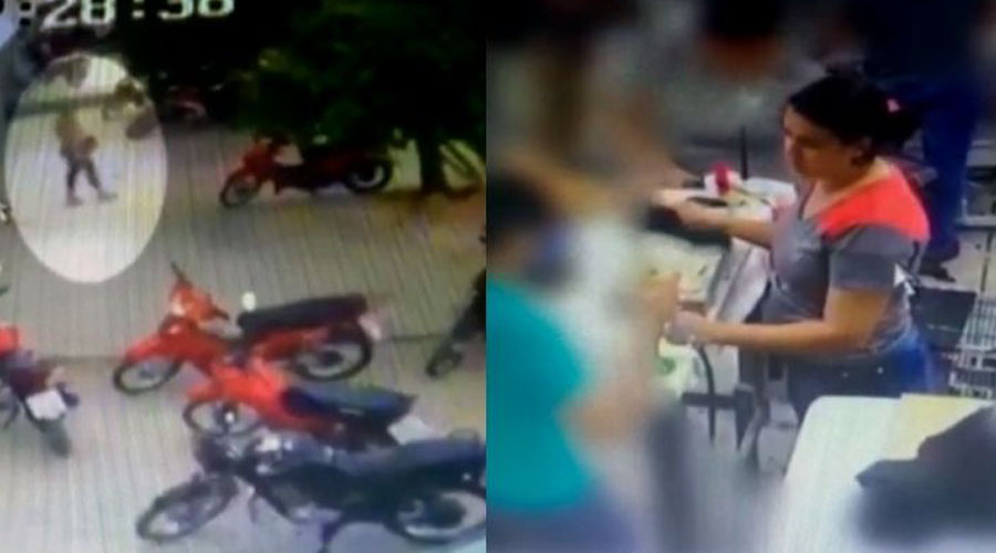 As imagens mostram a jovem trabalhando normalmente, e depois deixando o local de trabalho, uma fábrica de calçados de Patos.