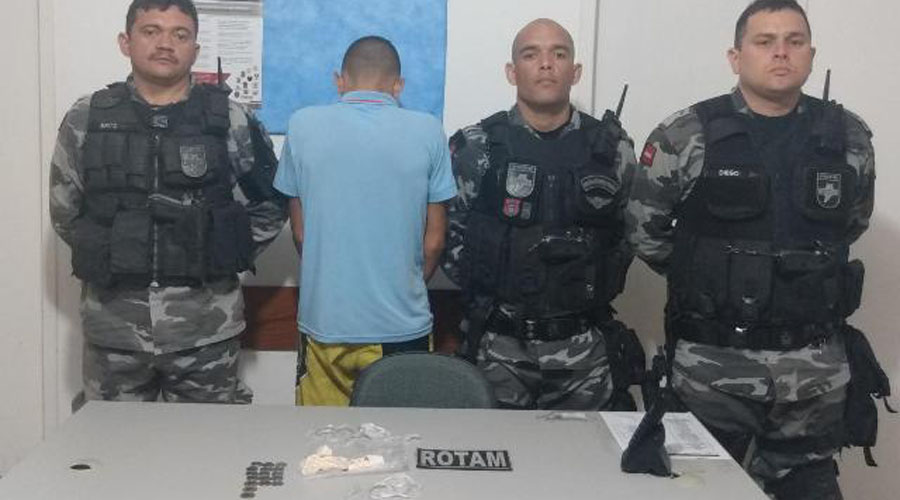 Policiais da Rotam, com apoio da Guarnição do Setor I, prenderam, por volta das 20h30, desta segunda-feira (19), um jovem de 19 anos de idade, suspeito de tráfico de entorpecentes em Patos.