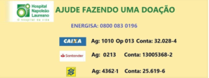 Você também pode fazer sua doação em dinheiro para a Central de Doações do Hospital Napoleão Laureano por meio dos seguintes dados bancários: