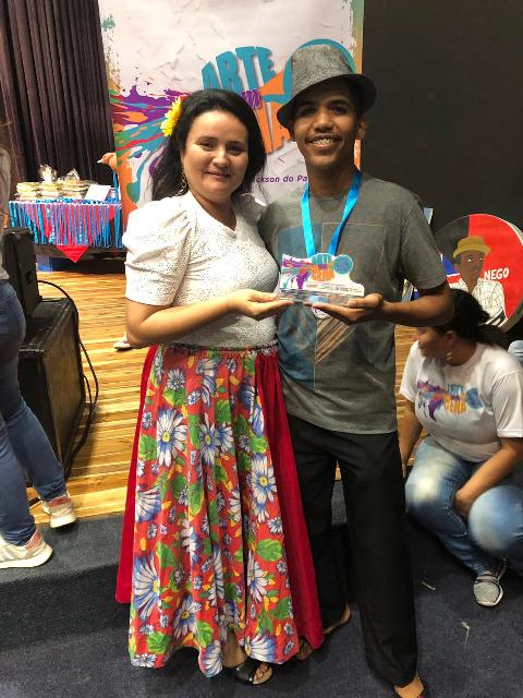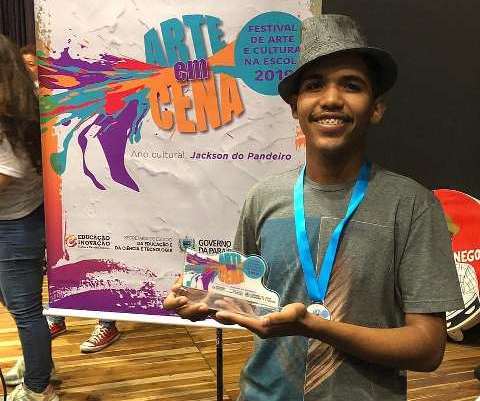 O aluno Luan Kened Alves da Nóbrega, do 3º C do Curso Técnico em Informática da ECITE Dr. Dionísio da Costa, em Patos, foi o vencedor da etapa regional ‘Festival de Arte e Cultura na Escola: Arte em Cena’, na categoria literatura com seu o cordel contando a trajetória de Jackson do Pandeiro.
