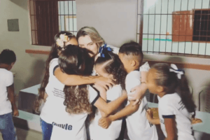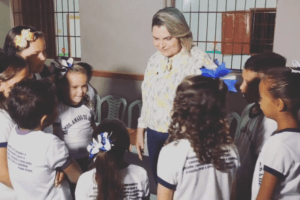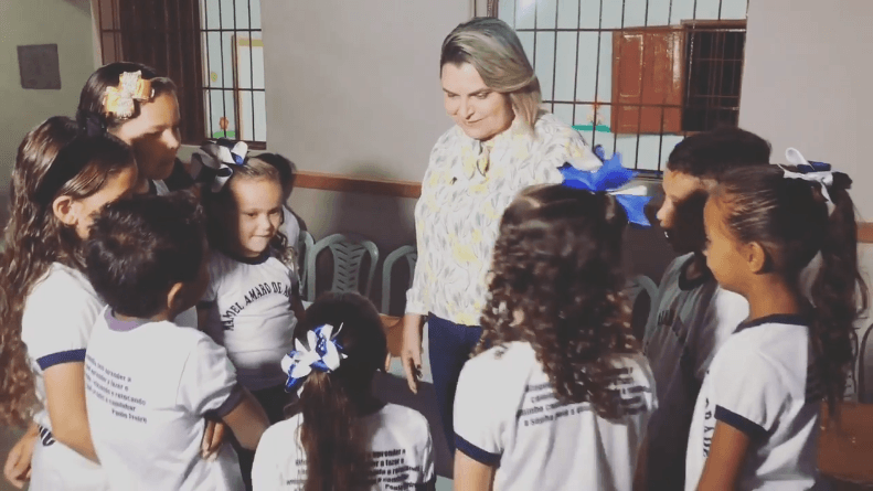 A prefeita foi muito elogiada pelo trabalho realizado e recebeu o abraço de várias crianças.