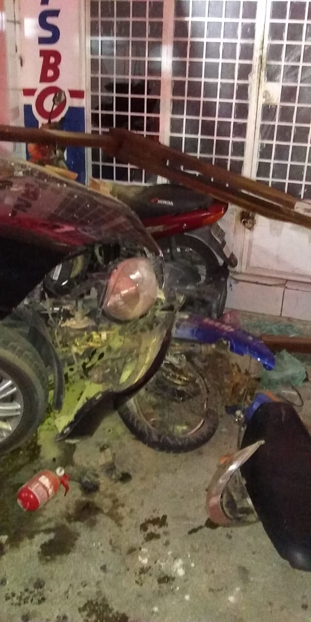 O carro, segundo as informações, estava “desgovernado”. Na moto estava um casal e, com o impacto, carro e moto atingiram a frente do Restaurante Boca a Boca.