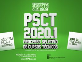 O Instituto Federal da Paraíba lançou edital de seleção para ingresso em cursos técnicos no semestre de 2020.1. Estão sendo ofertadas 3.670 vagas em diversos cursos em todos os campi do IFPB.