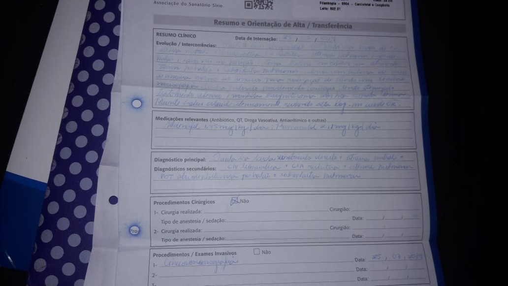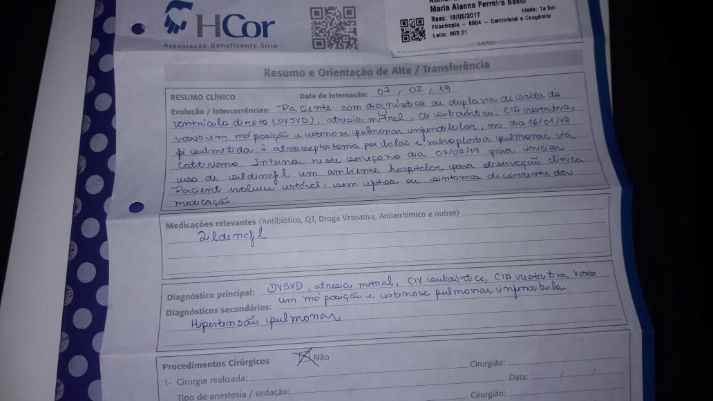 A senhora Adriana Carla, do distrito de Palmeira, em Imaculada, entrou em contato com o portal Folha Patoense denunciando que a sua filha Maria Alana, de dois anos e quatro meses, sofre de cardiopatia congênita complexa, está em Itapevi, na Grande São Paulo, e não tem condições de retornar para a Paraíba. A criança era acompanhada no Hospital Metropolitano de Santa Rita, na Grande João Pessoa, e foi encaminhada para fazer cirurgia de coração no Hospital do Coração (HCOR) em São Paulo-SP.