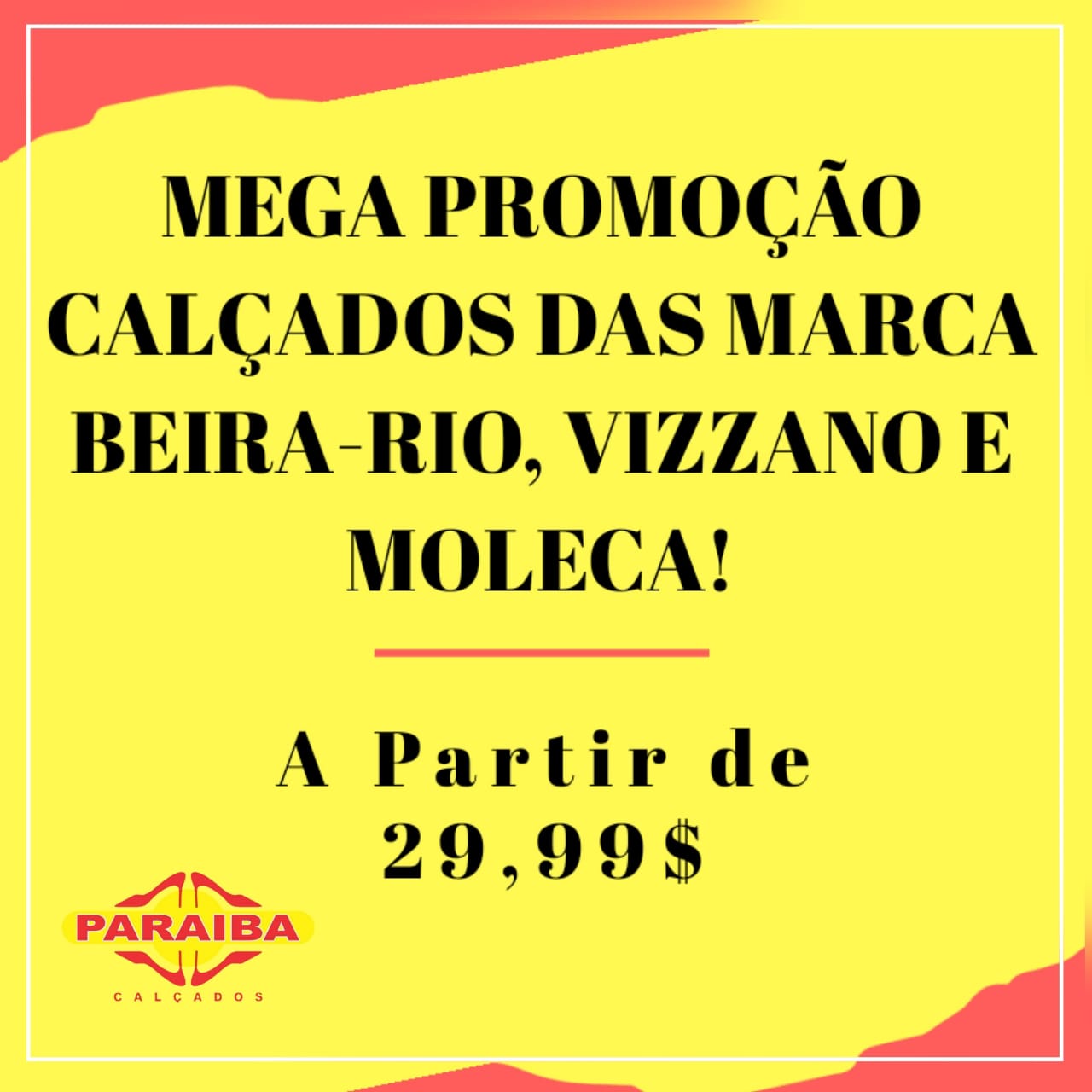 A Paraíba Calçados está com uma megapromoção: calçados a partir de R$ 29,99.