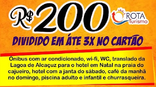 A empresa Rota Turismo organiza para os dias 2 e 3 de novembro a sua primeira excursão, saindo de Patos para Natal.
